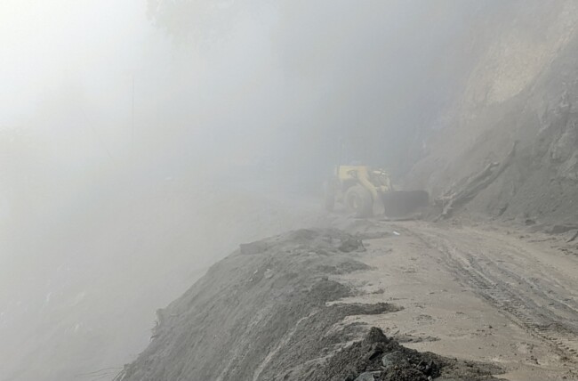 Menurut Heng Kosmas, material longsor berupa tanah bercampur batu menutup seluruh badan jalan dan tentu membahayakan pengguna jalan, bahkan kata dia sempat ada kejadian dimana sebuah mobil sempat terjebak di sekitar area longsoran karena mengalami patah as roda saat melintas di tengah hujan deras.